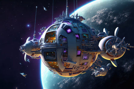 technology cybernetic space vehicle fantastic spaceship in deep space, generative ai