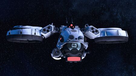 Spaceship in the space. Futuristic spaceship. 3d rendering