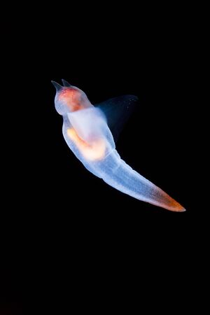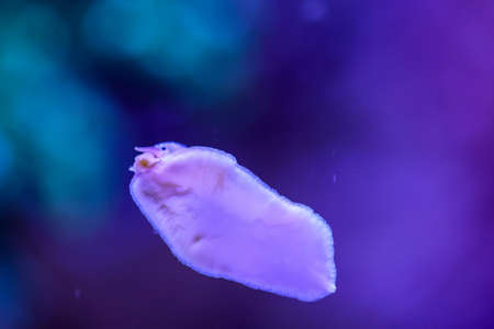 Rare image of Ghost flatworm - Maricola (Planarian) triclad flatworms in reef aquarium glass