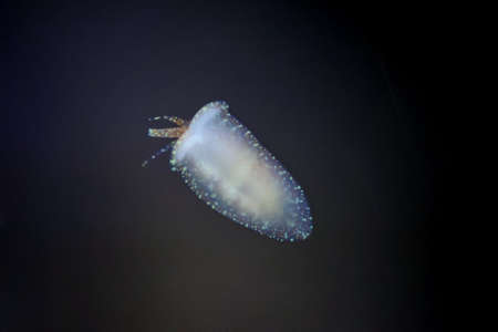 The Cladocera are an order of small crustaceans commonly called water fleas on the slide under microscope.