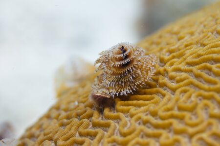 Christmas Tree Worm on coral reef off Bonaire, Dutch Caribbean