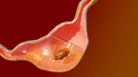 Gastritis is an inflammation of the inner lining of the stomach that causes intense pain, heartburn and burning. 3D illustration