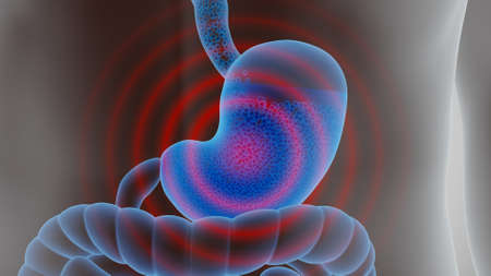 Human Internal Stomach with pain illness, 3d rendering. Computer digital drawing.