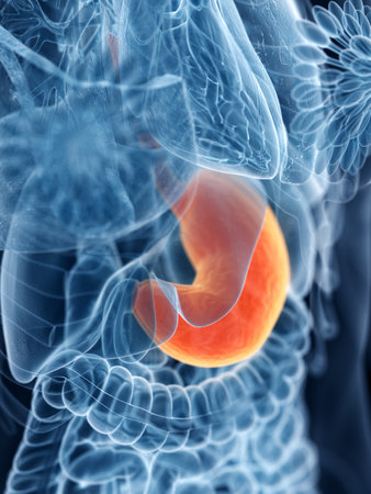 Human stomach on medical background, stomach disease, 3d illustration