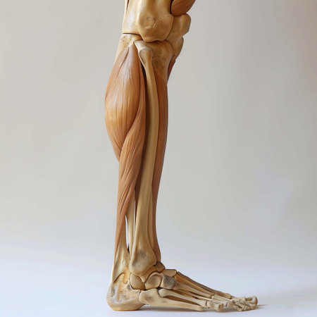 Human leg model highlights muscle and bone anatomy for educational and anatomical studies