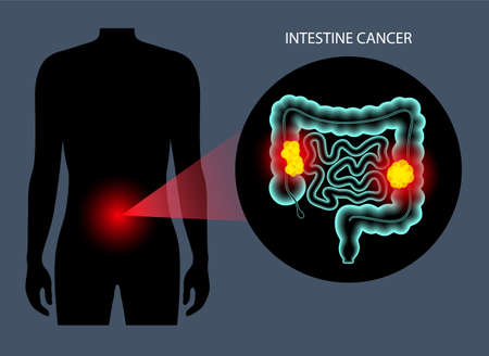 Colon cancer. Cancer attacking cell. Colon disease concept. 3d illustration