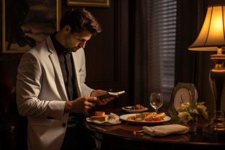 Delighted Guest Assessing Hotel Room Service Order -- AR 3:2