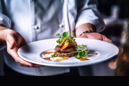 Modern food stylist decorating meal for presentation. AI, Generative AI
