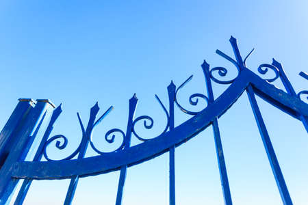 Detail of the gate against the blue sky. Summer Garden, St. Petersburg, Russia