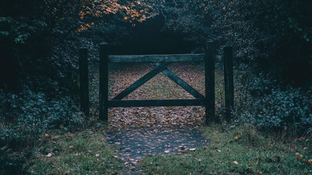 Show a single, unadorned wooden gate leading into a clearing, signifying transition and a path toward inner peace and focus --chaos 30 --ar 16:9 --v 6.1 Job ID: ff84eb30-9173-4557-b57f-65605aea4487