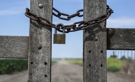 Padlock and chain in a farm gate