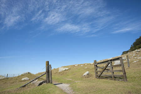 A view of a gate in the countryside in the United Kingdom.