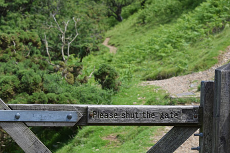 Sign on a gate on a public footpath at Meldon Reservoir, in the Dartmoor National Park, Devon, England