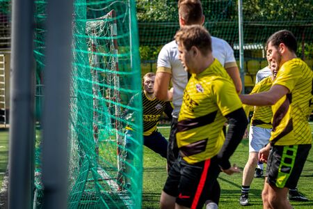 MOSCOW, RUSSIA - AUGUST 24, 2019: Soccer players in game. Amateur league in Moscow.