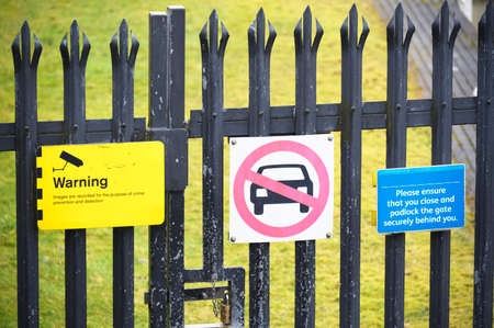 blank white label walking dogs on lawns is prohibited on black metal grate