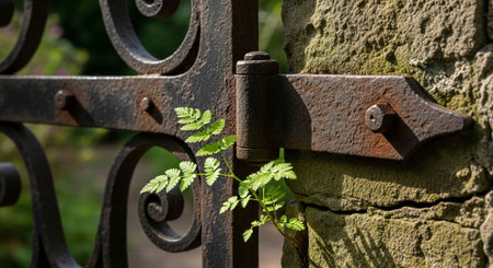 close-up of intricate metalwork detail on historical building, created with generative ai