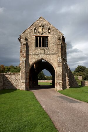 An old stone building at the entrance of an abbey