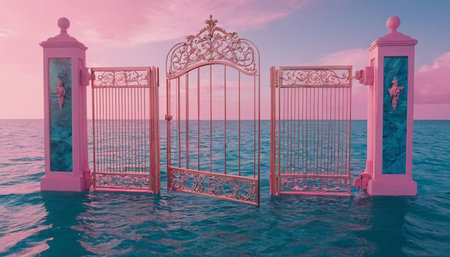 The magnificent gates of paradise swing open, casting a warm, golden glow that promises a new beginning.