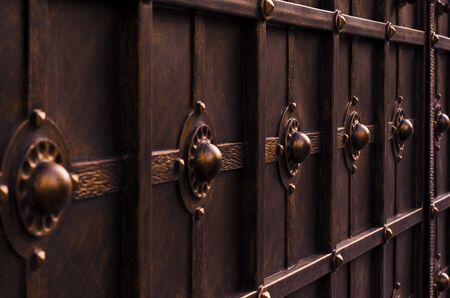 Decorative metal gate ornament. Antique iron door with classic ornaments.