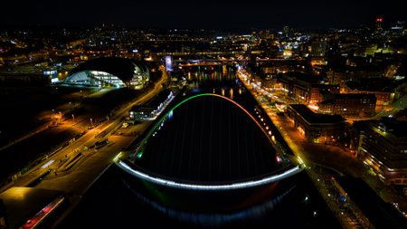 Millenium Bridge between Newcastle upon Tyne and Gateshead, England, at Night