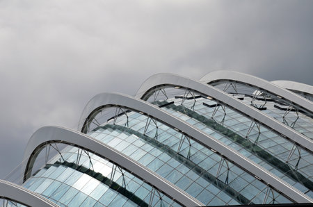 SINGAPORE-JUN 07, 2016: Day view of Flower Dome at Gardens by the Bay in Singapore. Spanning 101 hectares, and five-minute walk from Bayfront MRT Station.