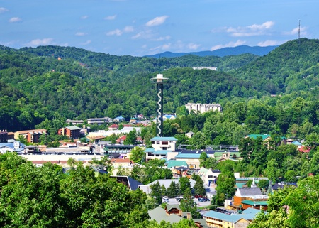 View of the Town in the Smokey Mountains from the Tower in Gatlinburg Tennessee USA
