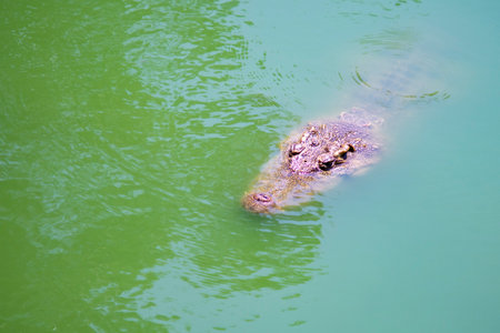 Crocodile in the water in the morning, Thailand.
