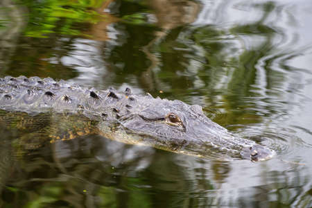 Close up of alligator's head in Florida Everglades.