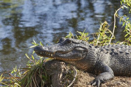 Alligator on the banks of a river.