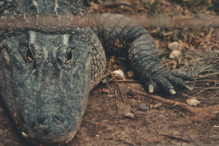 Close up portrait of an alligator in natural habitat, wildlife photography