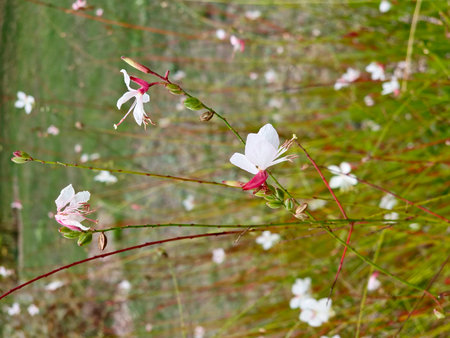Gaura lindheimeri (White guara) flowers. Onagraceae plants. You can enjoy the delicate flowers swaying in the breeze for a long period of time from early summer to autumn.