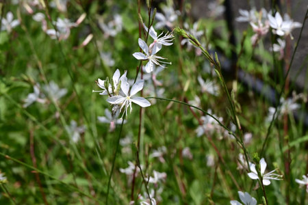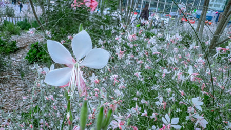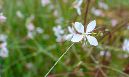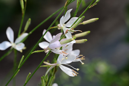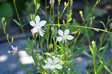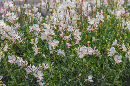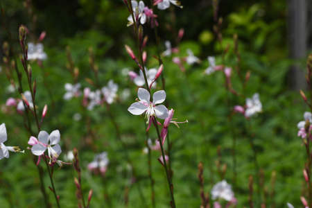 Gaura flowers. Onagraceae perennial plants. White four-petaled flowers bloom for a long period from early summer to autumn, providing a cooling sensation during the hot season.