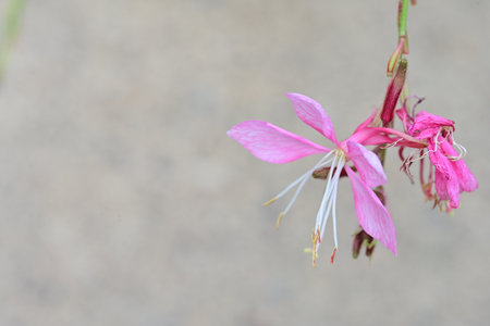Flower Pink gaura Oenothera lindheimeri close-up on a blurred background