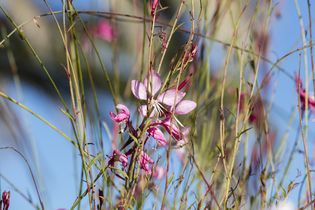Pink Gaura (Gaura lindheimeri), Onagraceae. Warm sunny day.
