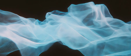 Translucent thin fabric fluttering in the wind. Abstract wavy background. AI generated.