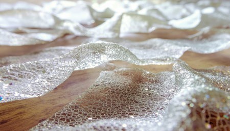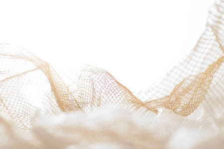 Close up of tulle mesh hex pattern with ethereal translucent texture seamless wallpaper background delicate fabric surface detail airy textile design for decoration fashion bridal style
