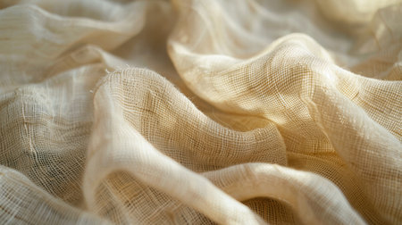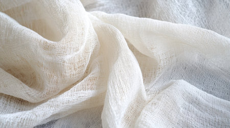 A soft, textured white fabric is gracefully arranged across a neutral surface, gently catching light.