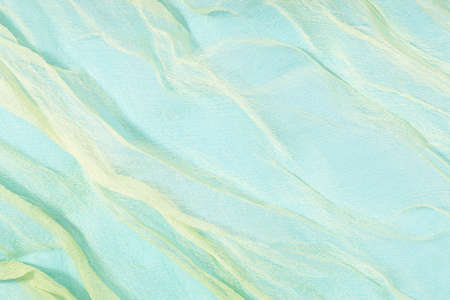 Blue and Green Abstract background texture of soft chiffon. Full frame