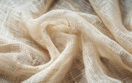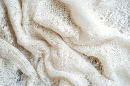 Close-up view of a soft, creamy fabric texture featuring gentle, flowing waves. Ideal for backgrounds in interior design, fashion, and textile presentations.