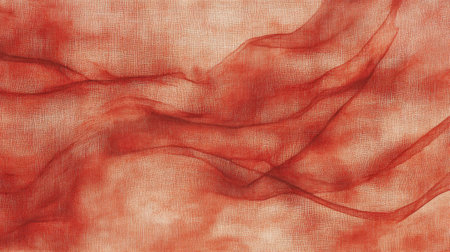 Gentle waves of soft red fabric flow and intertwine across a warm, textured backdrop, creating an inviting and elegant aesthetic suitable for various decor styles.