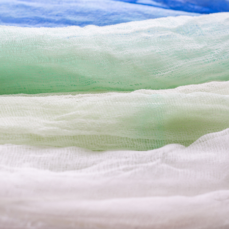 White, green, emerald, blue shades gauze dyed fabric beautiful background