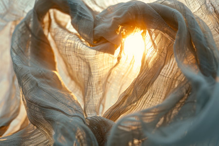 Soft, flowing fabric captures light in an ethereal display of delicate textures and warm tones, creating a serene and dreamlike atmosphere for artistic projects.