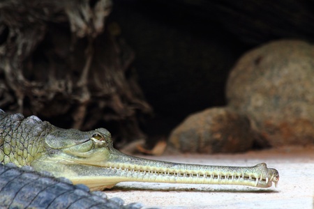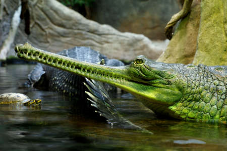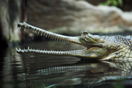 Gharial crocodile, also knows as the gavial crocodile. Gavialis gangeticus crocodile