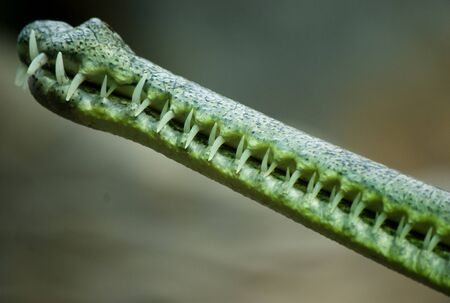 small crocodile, aligator (gavial) detail of his sharp mouth