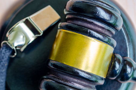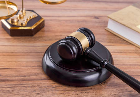 Law theme, gavel or mallet of the judge, lawyer enforcement officers, evidence-based cases taken into account in the court abount business, legislation.