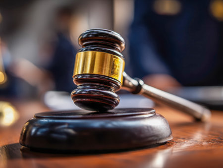 A finely crafted wooden hammer sits atop a surface, its smooth finish reflecting authority, embodying the solemnity and dignity of judicial decision-making.