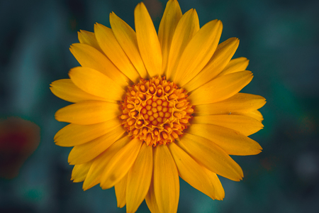 Yellow flowers of Venidium marigold Venidium calendulaceum close-up. Yellow flowers and stamens macrophoto. nature background. retro design.