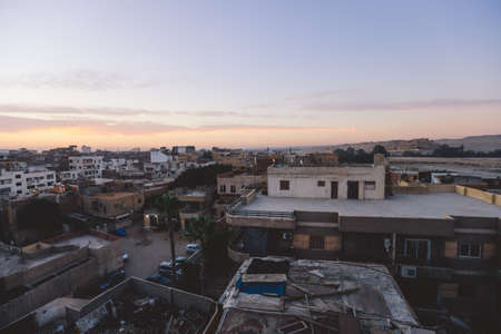 Sunset Cityscape View to the Giza City with the Colorful Sky and Local Buildings, Egypt