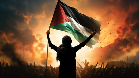 Create a thought-provoking and balanced visual representation of the ongoing conflict in Palestine. Generative Ai