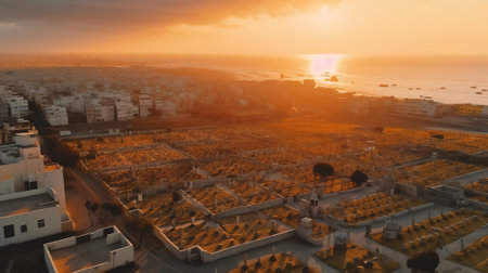 Generative AI : Aerial top down view of Monopoli old town at sunset Bari Puglia Italy